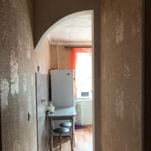 Балкон застеклен раздвижными рамами. В квартире установлен стеклопакет, есть «хрущёвский холодильник».