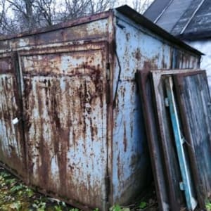 Гараж металлический (6,8 кв. м), 2,5х2,7х2м (сзади 1,7м).Не гнилой. Использовался для мотоцикла "Урал" с коляской.